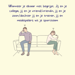 En toch is het soms flink zoeken in jouw relatie met je partner, teamgenoot, collega, leidinggevende, klant, vriend/vriendin, ouder of kind, omdat we elkaar niet verstaan….
